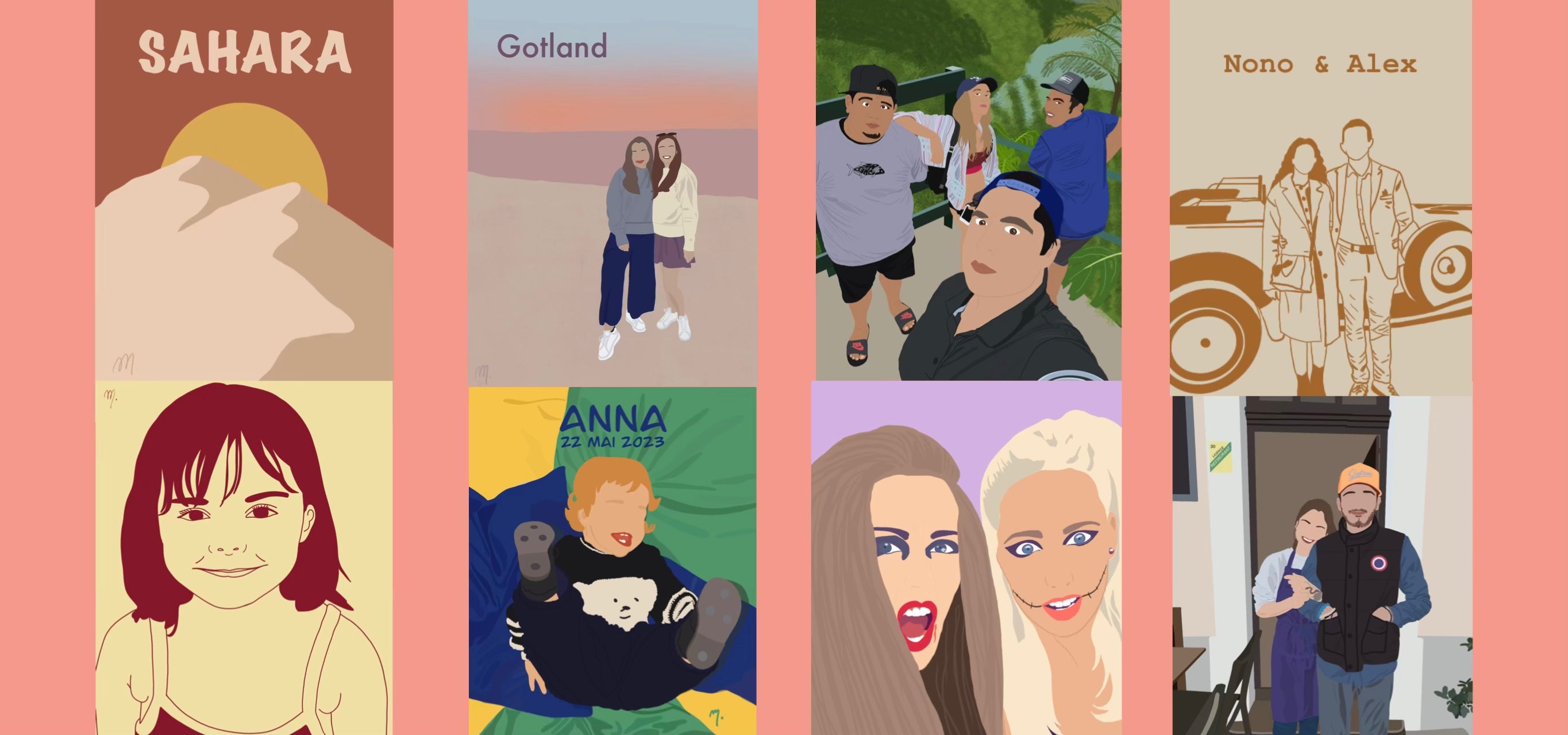 Offre un cadeau original et inoubliable avec une illustration entièrement personnalisée. Que ce soit pour immortaliser des portraits de famille, des animaux de compagnie, un souvenir de mariage, ou une scène de vacances, chaque illustration est sur-mesure, réalisée à partir de tes photos.